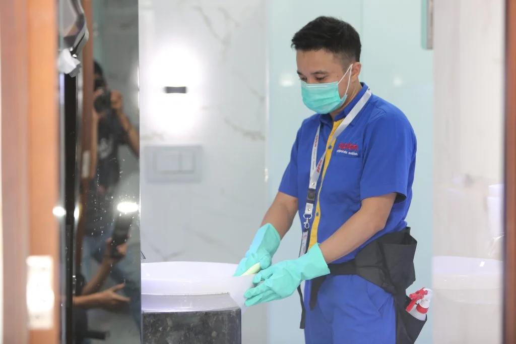 - Memastikan toilet selalu dalam kondisi bersih, tersedia tisu, sabun, dan kebutuhan lainnya.