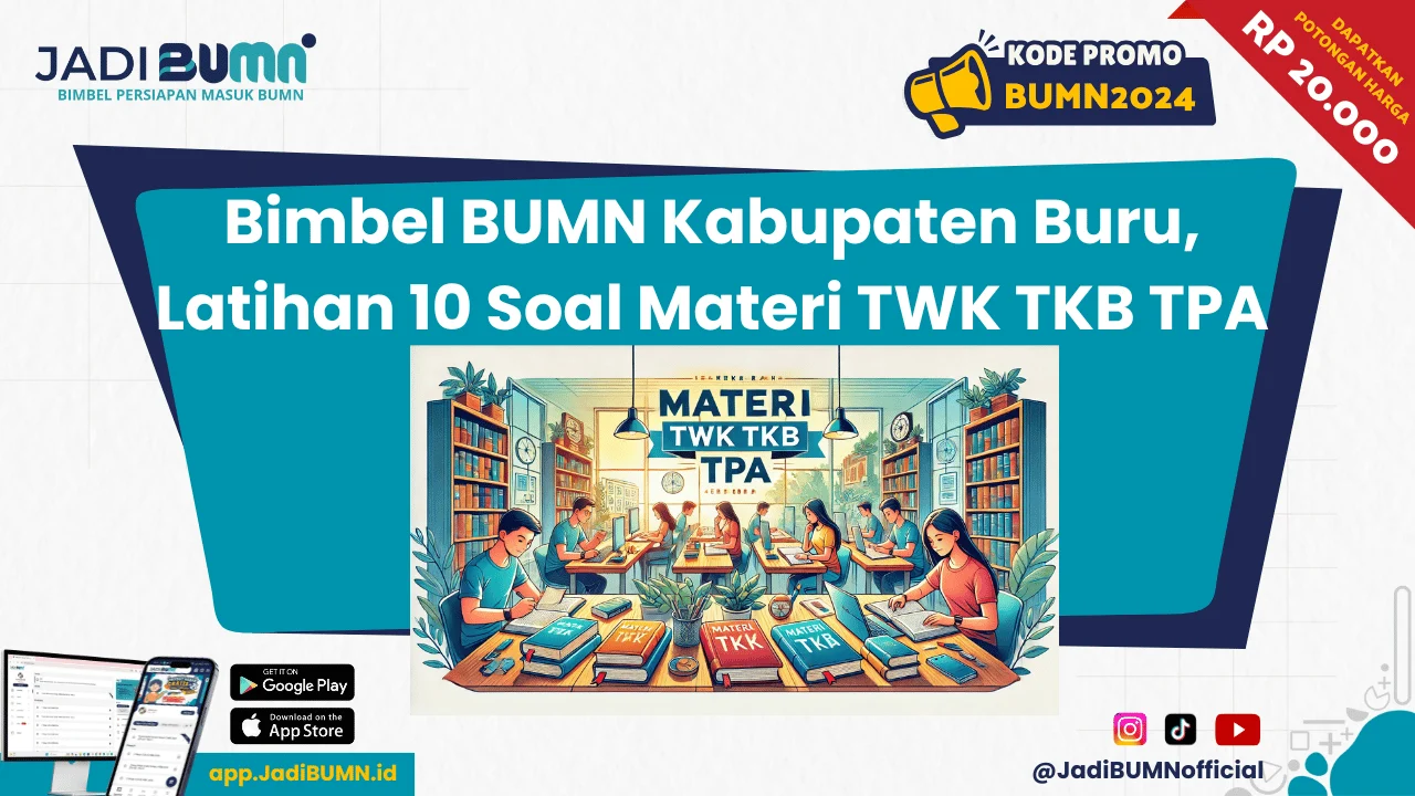 Bimbel BUMN Kabupaten Buru menjadi solusi bagi Anda yang ingin mempersiapkan diri secara optimal untuk seleksi Badan Usaha Milik Negara. Dengan metode belajar yang terstruktur, Bimbel BUMN Kabupaten Buru membantu peserta memahami materi-materi penting seperti Tes Wawasan Kebangsaan TWK, Tes Kompetensi Bidang TKB, dan Tes Potensi Akademik TPA.