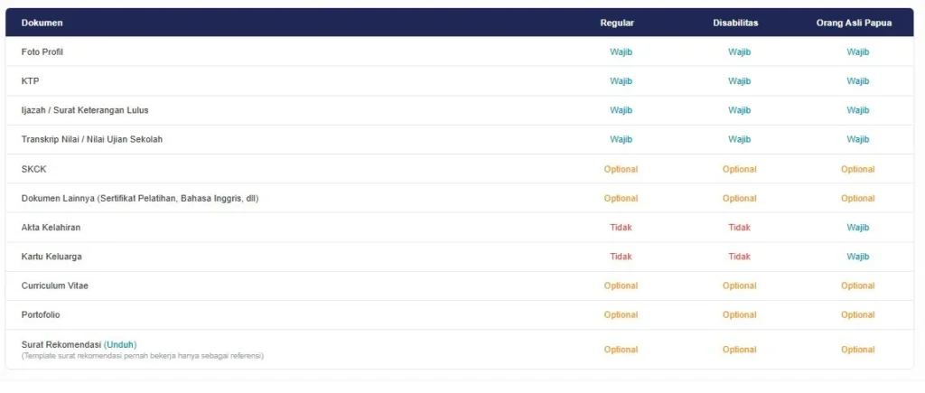 - Akta Kelahiran dan Kartu Keluarga (khusus OAP): Diperlukan untuk memvalidasi keturunan asli Papua.