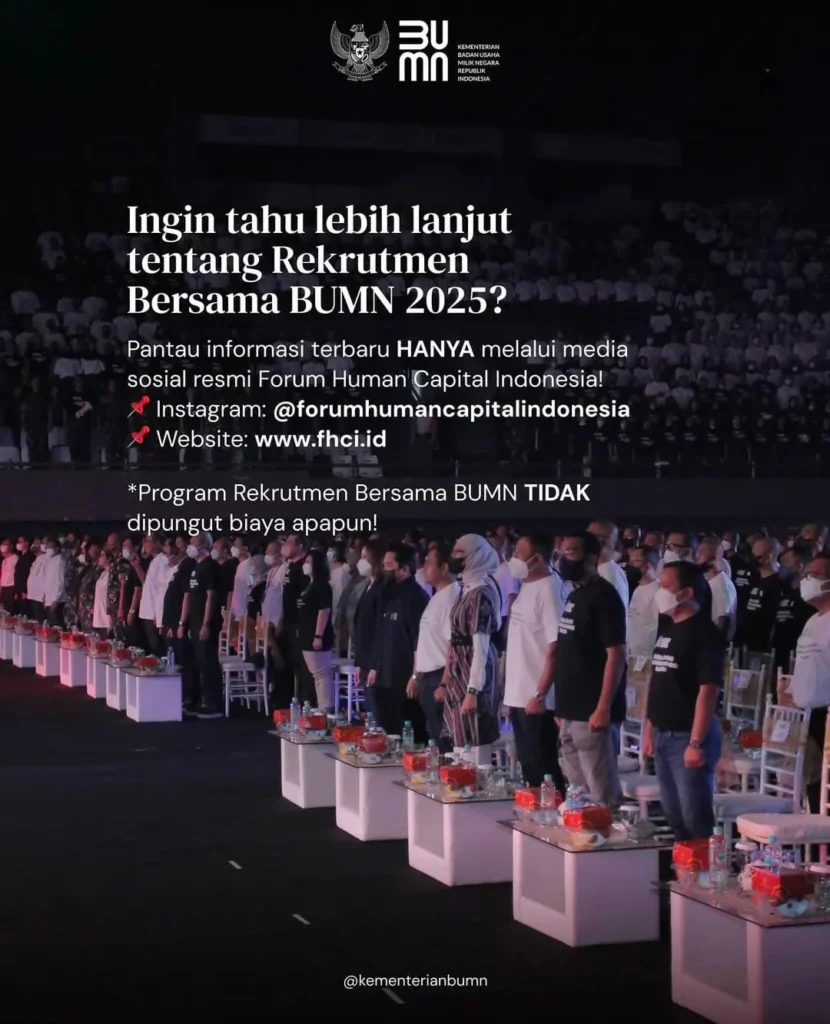Rekrutmen BUMN 2025 segera dibuka, dan ini adalah kesempatan besar bagi kamu yang ingin berkarier di Badan Usaha Milik Negara (BUMN). Peluang bagi fresh graduate maupun experienced hire dari berbagai latar belakang pendidikan, mulai dari SMA/sederajat, D3, D4, S1, hingga S2. BUMN menawarkan berbagai posisi menarik di berbagai sektor, termasuk perbankan, energi, transportasi, dan banyak lagi.